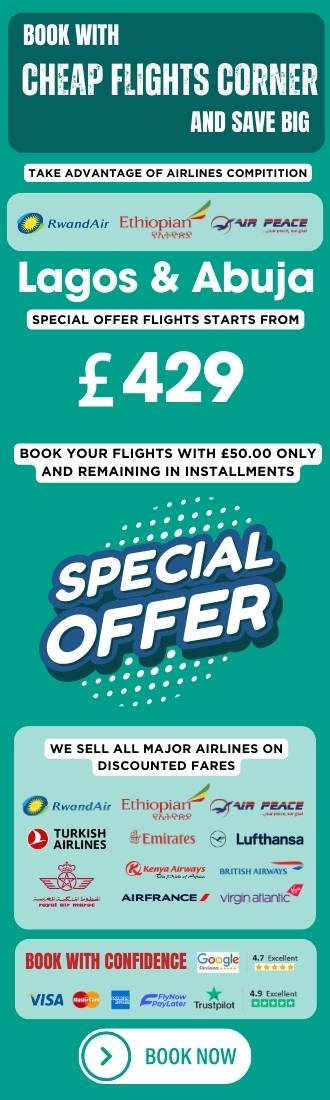 Booking Air Peace Airlines flights at Cheap Flights Corner ensures that you get the best deals on your travel plans. Air Peace, known for its extensive network and reliable service, offers comfortable and convenient flights across various destinations. By using Cheap Flights Corner, travelers can easily compare prices, access exclusive promotions, and find the lowest fares available. This user-friendly platform simplifies the booking process, allowing you to secure your tickets with just a few clicks.